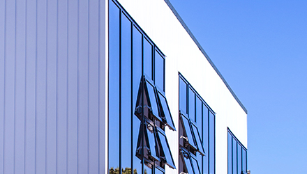 Nu-Wall’s E100 was the profile of choice for this building, because of its strong vertical lines that further highlight the shapes of the building. Powdercoated aluminium offers great durability and low maintenance, which is an important feature for a beachside home on the wild West Coast.